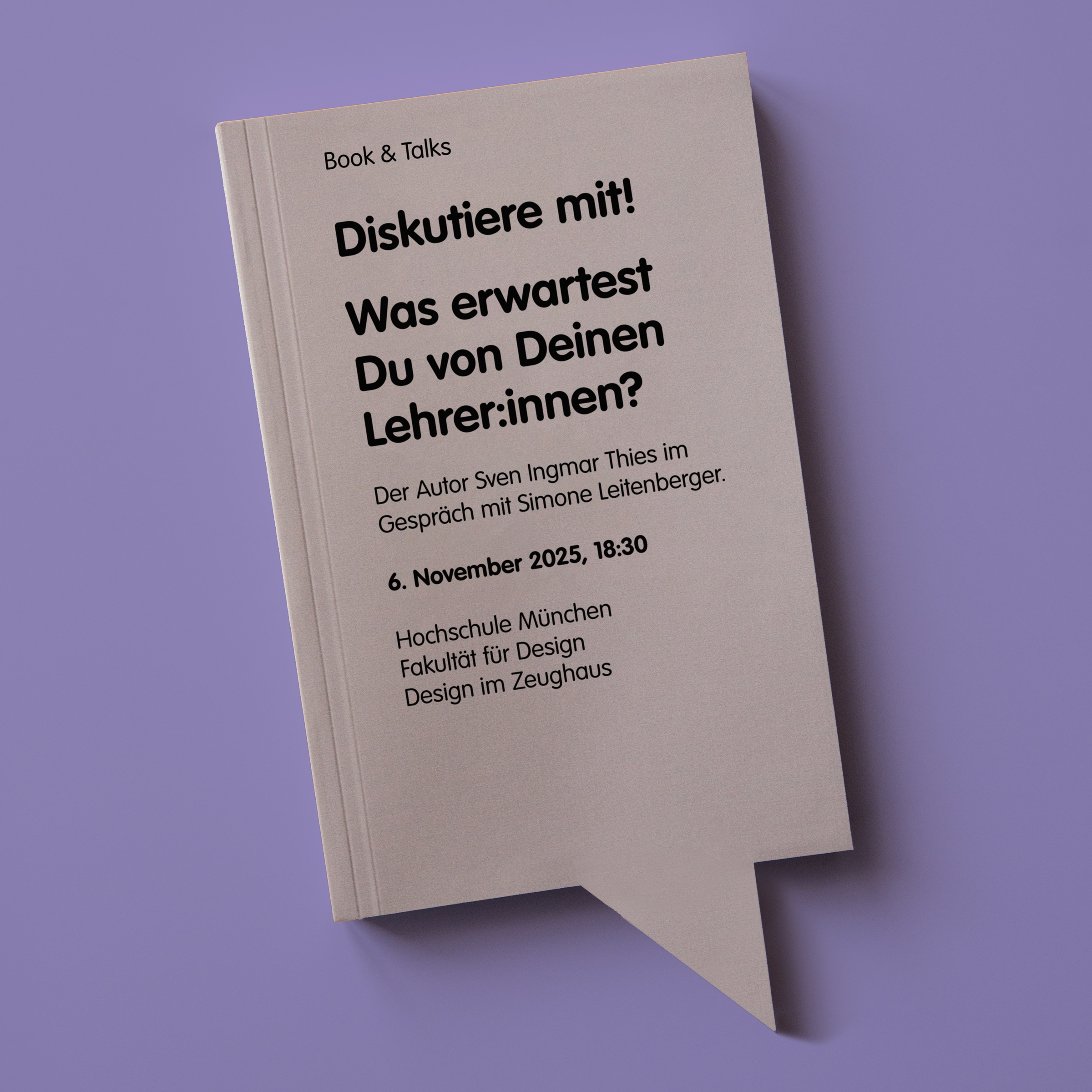 In ihrem Vortrag »Teaching Design« setzen sich Simone Leitenberger und Sven Ingmar Thies mit dem Lehren und Lernen auseinander – und öffnen den Diskurs ins Publikum. Die Diskussion richtet sich an Lehrende und Studierende unterschiedlicher Designdisziplinen, da es im Buch neben den Interviews auch fachübergreifend um das tägliche Miteinander im Studium geht: um respektvollen Umgang, die Kraft des Zuhörens, Kritikfähigkeit, Feedbackkultur und den Kontext Lehre im Ganzen: Welche Atmosphäre benötigt das Experimentieren? Welche Erwartungen gibt es an Lehrende? Was will man gemeinsam erreichen? Haben diese Kommunikations-Skills eine Bedeutung für das Berufsleben? Welche Rolle spielt die soziale Interaktion im Designprozess?